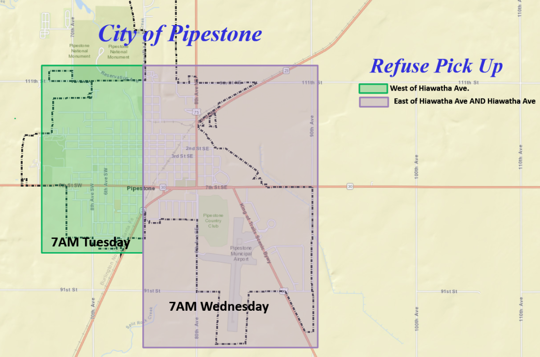 City of Pipestone Garbage Pick Up Map